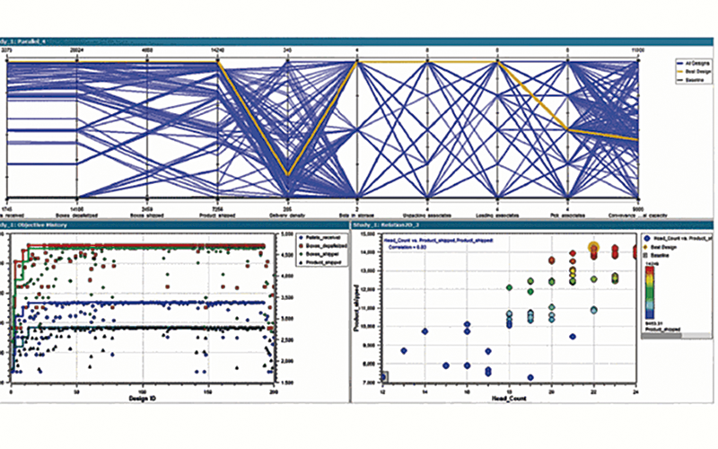 Los elementos visuales ayudan a los usuarios a comprender mejor los números y a señalar dónde se deben realizar los cambios. Estas herramientas de software evalúan la mejor utilización de las máquinas y la mano de obra, por ejemplo, asegurando que un almacén tenga suficientes camiones disponibles en el muelle de carga para manejar los envíos salientes, pero no demasiados, para evitar el envío de camiones descargados.