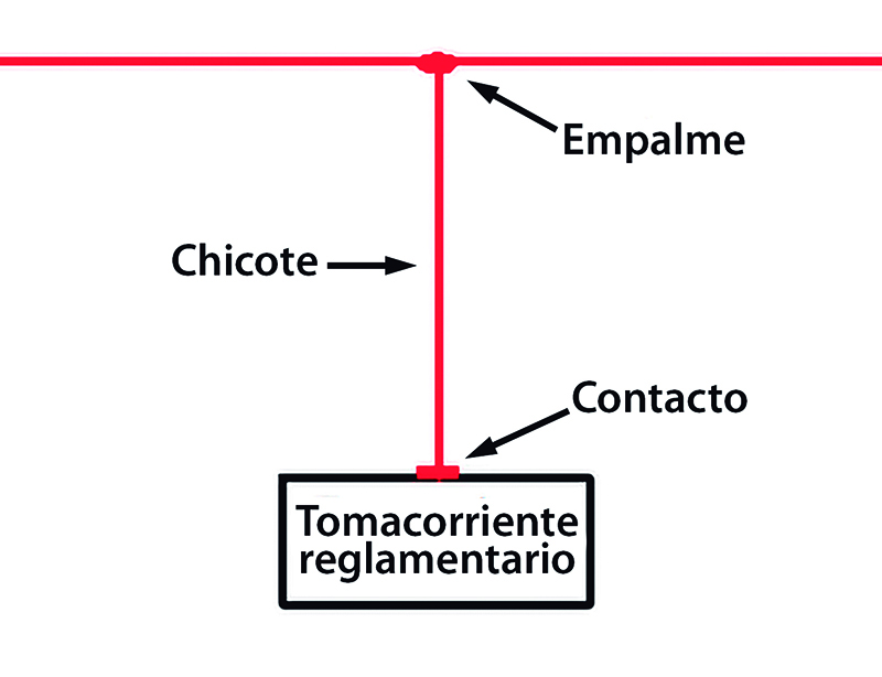 El esquema unifilar resalta, por su parte, los puntos más significativos que se deben tener muy especialmente en cuenta a la hora de instalar o reemplazar un tomacorrientes.
