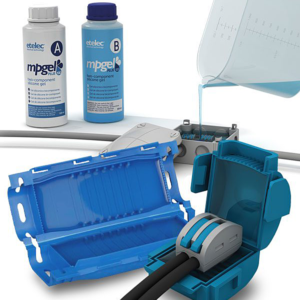 Por último, pero no menos importante, las opciones de protección de las conexiones contra humedad o polvo. Bajo la marca Etelec, Micro Control ha desarrollado diversos productos complementarios y una gama completa de cajas de empalme listas para usar que facilitan la tarea de instalación y aseguran un trabajo profesional en minutos. Combina tecnología de empalmes y aislación tales que le han permitido alcanzar estándares medioambientales y de seguridad muy superiores a otros métodos de aislación tales como las resinas de poliuretano y epoxi.
