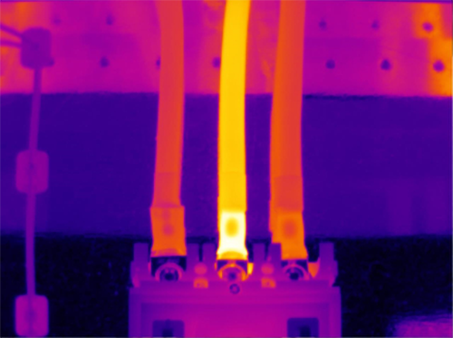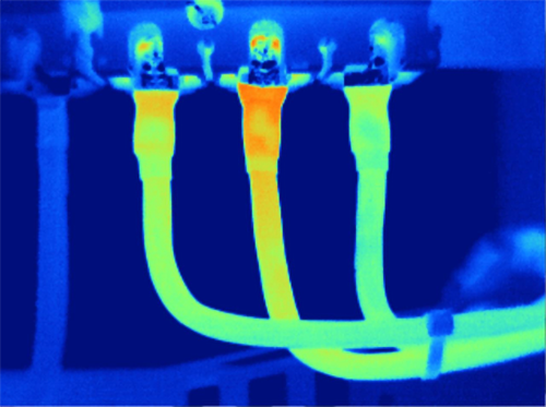 Figura 4. Inspección termográfica de una conexión eléctrica mostrando una anomalía térmica asociada a un incremento de resistencia
