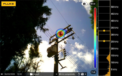 Figura 3. Imagen acústica que permite localizar actividad de descarga parcial o corona en un componente de una instalación eléctrica