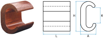 Conector a compresión para cables de cobre o de acero cobreado con jabalina, fabricado con extrusión de cobre electrolítico de 99,9 por ciento de alta conductividad, que garantiza una conexión fuerte y duradera.