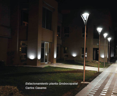 Se colocaron farolas marca Strand modelo FM LED a lo largo del frente de la planta y en el estacionamiento de la misma. Es muy ilustrativo analizar los datos de lo realizado: