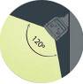 Los equipos sin direccionamiento deben tener una apertura angular de 120º, de forma tal de lograr una amplia cobertura lateral y vertical. De esta manera deberemos colocar menos equipos y lograremos homogeneizar el nivel de iluminación a nivel de piso.