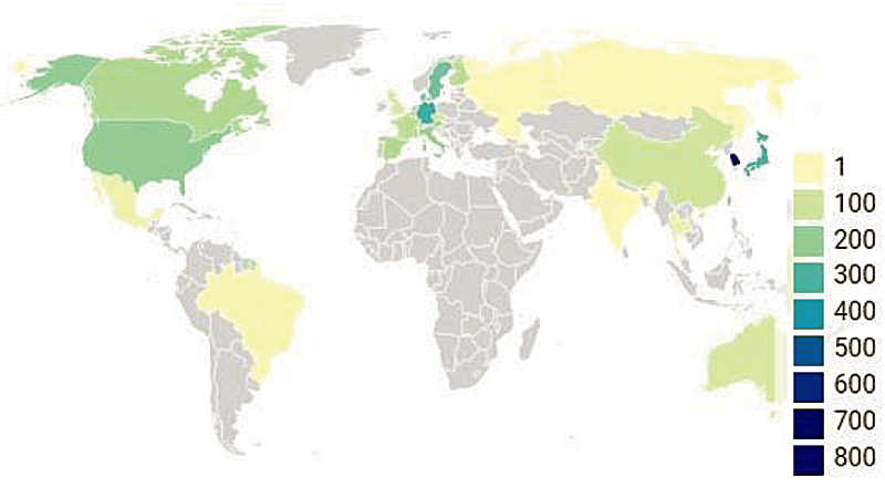 Una mirada global sobre la temática evidencia cómo los países más robotizados del mundo, muchos de ellos potencias económicas, tienen bajos valores de desempleo y un poder adquisitivo competitivo a nivel mundial de los salarios. En la figura 3, elaborada por la Cámara de Comercio de España-Corea, se pueden observar los índices de robotización en el mundo.