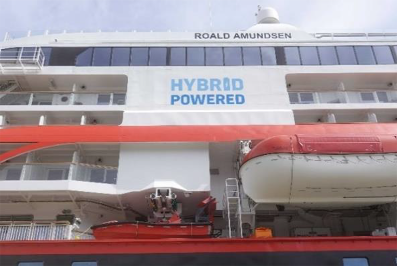 Figura 5. Hybrid Powered. En ambos laterales del buque MS Roald Amundsen hay ostensibles leyendas que informan acerca del tipo de propulsión implementada.