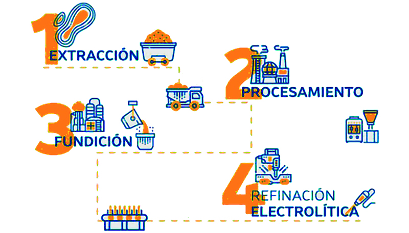 El producto final se llama “cobre blíster”, una forma porosa y frágil de cobre, con una pureza del 98 al 99,5%.