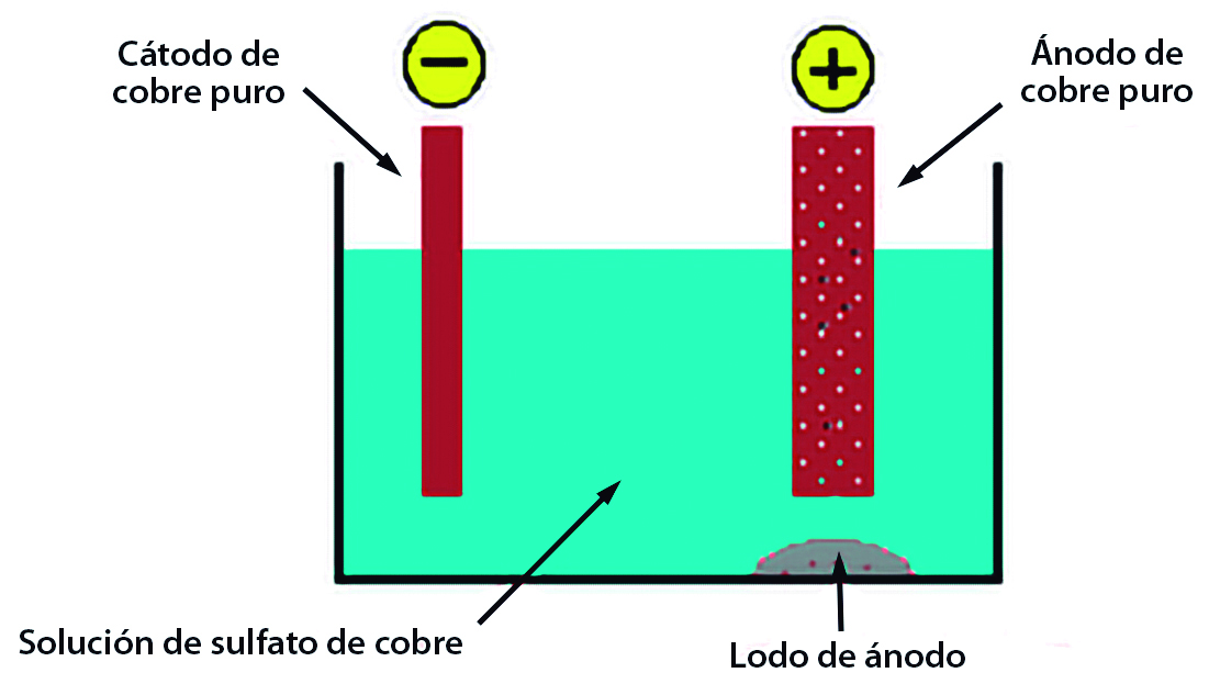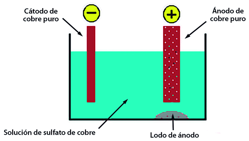 Cualquier metal en el ánodo impuro que esté por debajo del cobre en la serie electroquímica (serie de reactividad) no se disuelve como iones.