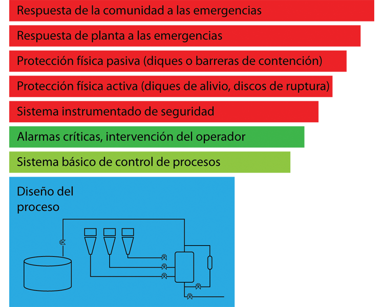 Las plantas de procesos se construyen con múltiples niveles de protección, seleccionados y diseñados para impedir, mitigar y/o reducir las consecuencias de cada uno de los eventos identificados como potencialmente peligrosos.