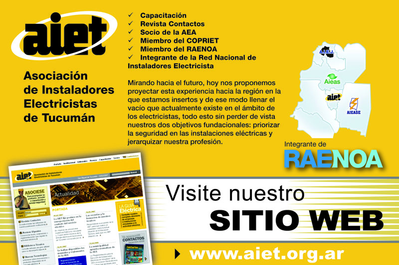 - A fines de 2007 la AIET se incorpora como miembro fundador del COPRIET (Comisión Permanente de Reglamentación de las Instalaciones Eléctricas en Inmuebles de Tucumán).