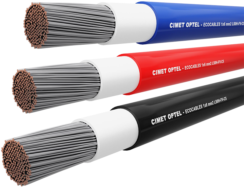 Dentro de su catálogo, la empresa Cimet cuenta con opciones de cableado para sistemas fotovoltaicos, especialmente ideados y fabricados para ese tipo de aplicaciones. Se trata de Ecocables, cables para instalar en los sistemas fotovoltaicos (FV), para la instalación en el lado de corriente continua. Son adecuados para uso de forma permanente a la intemperie, durante muchos años en condiciones climáticas variables exigentes.