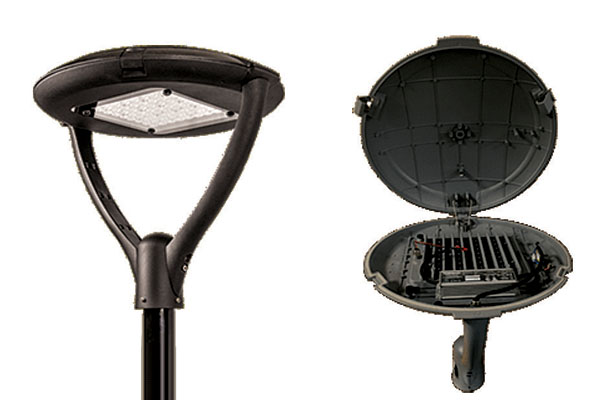 La farola Lucero es una luminaria de 75 W y eficiencia luminosa de 100 lm/W, dimerizable con cuerpo de aluminio inyectado y de color negro con pintura texturada a la que se le puede hacer mantenimiento y control con rápido acceso gracias a la apertura sin herramientas (aunque sí cuenta con bloqueo de seguridad).