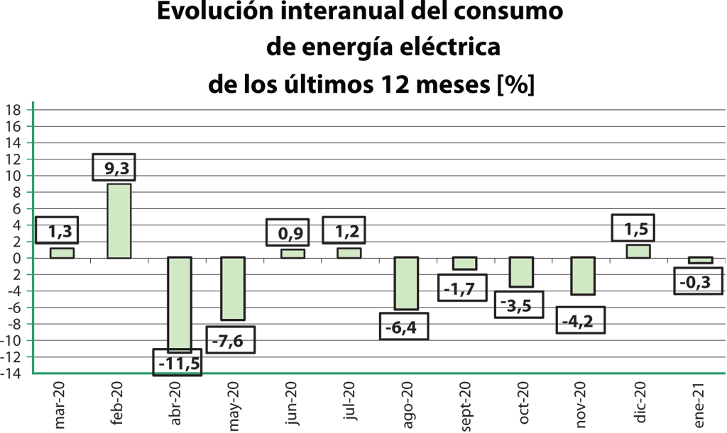 Por otro lado, en el mes de enero de 2021 se registró un nuevo récord de potencia máxima, que alcanzó los 26.450 MW, superando el récord histórico de febrero 2018 de 26.320 MW.