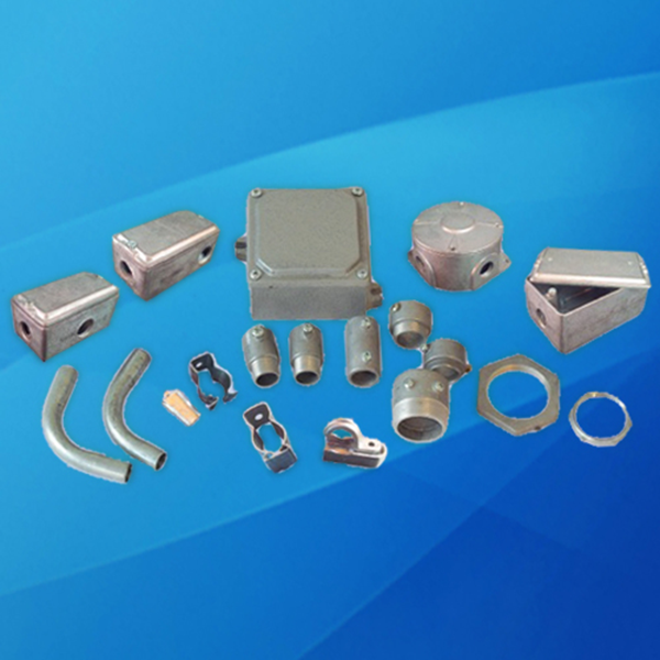 Dentro de este grupo se encuentran la caja bastidor de derivación, de uso exterior con tapa y con tapa y junta; la caja múltiple con tapa (interior y exterior) en "X" y "L", según lo que necesite el instalador; la caja múltiple redonda; la caja de paso; el conector para caja múltiple y derivación; los conectores para caja estándar; el buje de reducción; la abrazadera completa de aluminio; las tuercas; las cuplas; la grampa chaveta; los caños de hierro sin rosca; las curvas rígidas; los anillos de sellado interior para conectores y uniones; los tapones, y las cajas de piso.