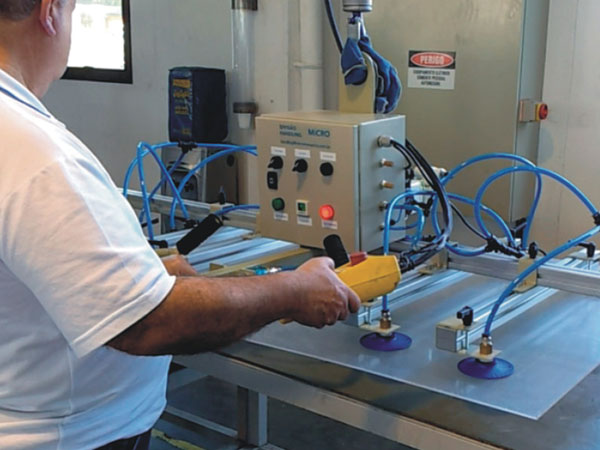 Las posibilidades de aplicación son múltiples: tableros de chapa, planchas de madera o de plástico, bidones, ventanas o placas de cristal de diferentes formatos (inclusive cóncavas o convexas), y puede trabajarse también en combinación con robots para resolver operaciones de paletizado, carga y descarga de equipos o montaje de piezas frágiles.