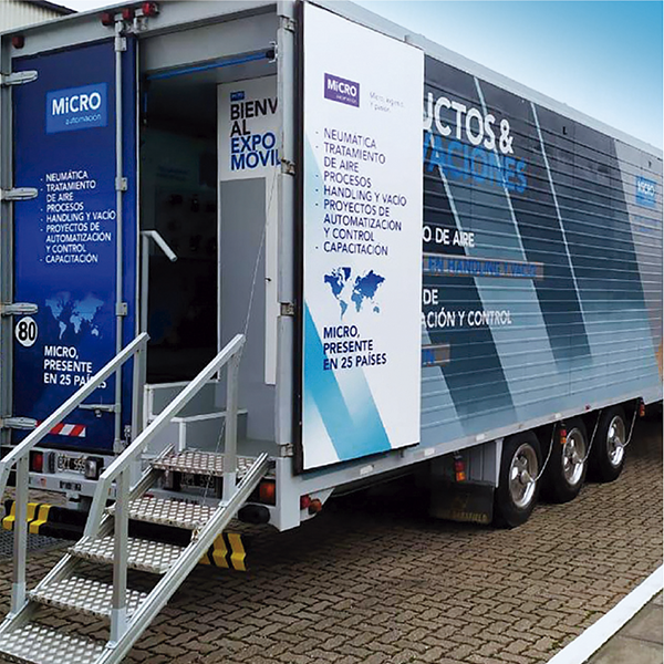 Micro automación pone a disposición dos unidades Expo Móvil que se desplazan hasta donde se requieran. Estas unidades rodantes están equipadas con la tecnología necesaria para brindar capacitación técnica en automatización en cualquier lugar del país.