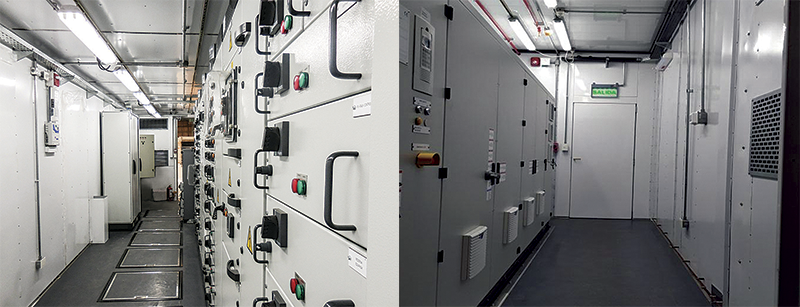 En su interior, la sala contiene perfilería y tendido de bandejas aptos para el cableado y distribución interna, tablero de comando interior para luz/AºAº, controlador de resistencia calefactora, etc.