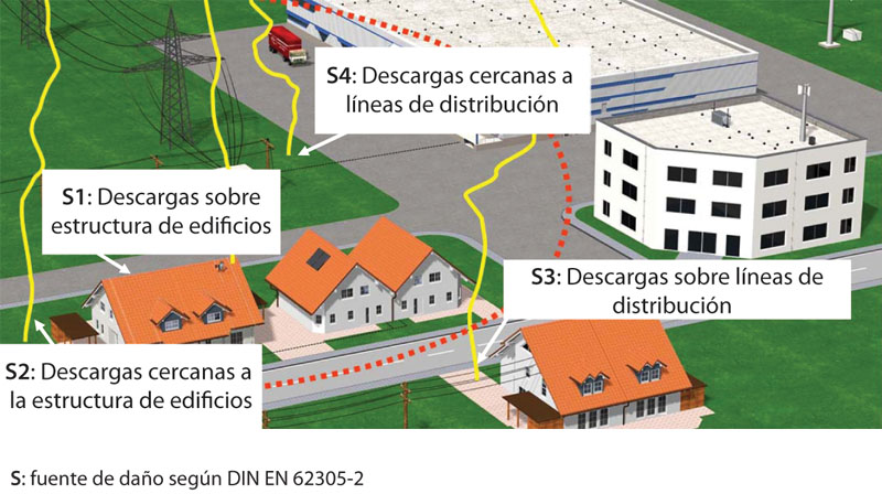 Asimismo, existen diversos tipos de daños según el lugar de incidencia del rayo (ver figura 3):