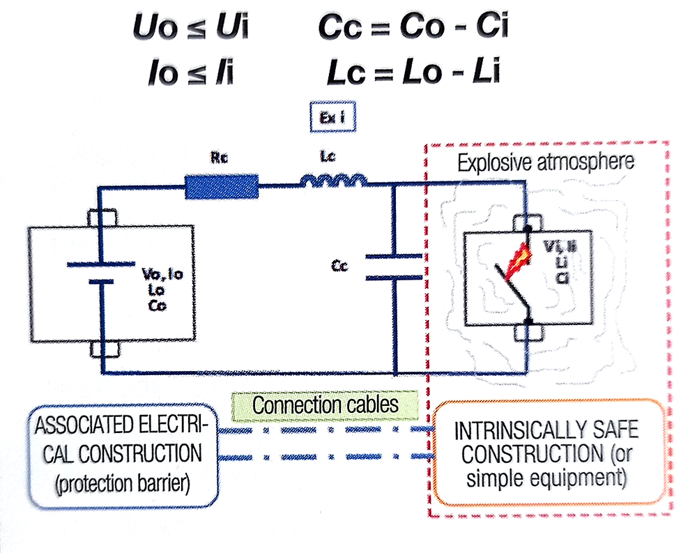 Todos los circuitos se componen de algún tipo de construcción (barrera de seguridad intrínseca), cables protección Ex-i y equipamiento de seguridad intrínseca.