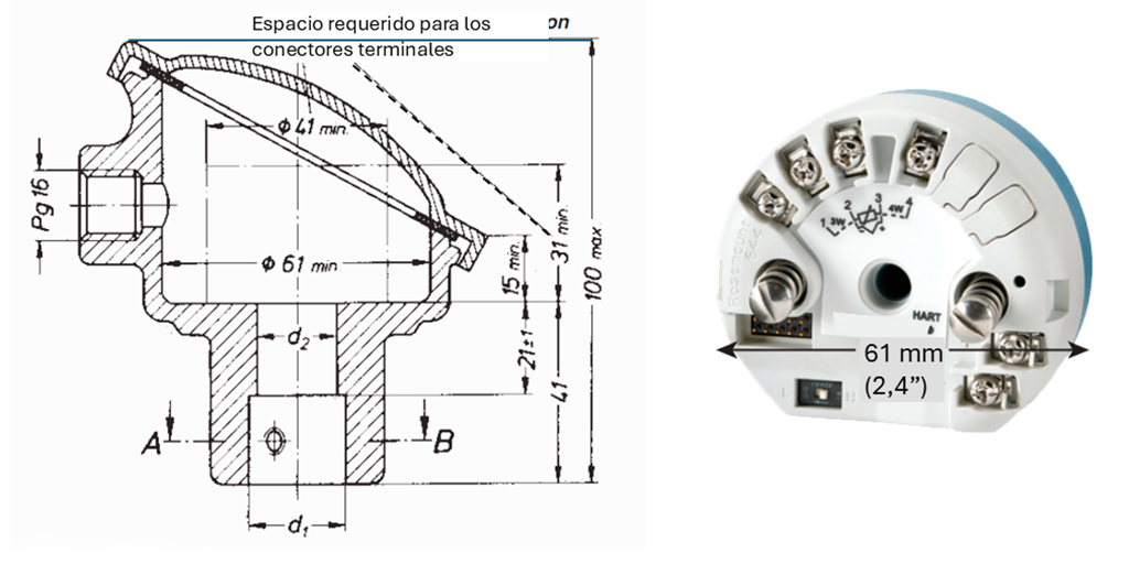 Este tipo de transmisor generalmente se monta en la parte superior de la termovaina o si es necesario, como por ejemplo si se presentan altas temperaturas ambientales, en un tubo de extensión por temperatura. Si estas medidas no son lo suficientemente efectivas, otra opción consiste en utilizar un transmisor remoto separado que se pueda montar en un entorno menos agresivo mientras sigue conectado al sensor de temperatura.