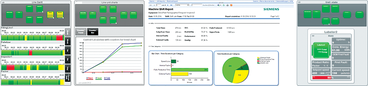 Con PWA, se dispone de una supervisión de líneas según un estándar tanto para la operación, como para el diagnóstico y el mantenimiento. Permite, además, combinar datos tanto provenientes de las máquinas como del sistema de monitoreo de líneas (cálculos de KPI y OEE, entre otros) en una visión completa (all in one, todo en uno). (Figuras 5, 6 y 7)