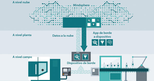 No solo las aplicaciones de borde, tales como Analyze MyWorkpiece, ofrecen la posibilidad de recopilar y analizar los datos cerca de donde se originan dentro del proceso de producción, sino que en Siemens también se integran con MindSphere, el sistema operativo de IoT que se encuentra en la nube. En la Informática de Borde, el procesamiento de datos no es exclusivo del núcleo de la nube, sino que fundamentalmente sucede en la periferia, el borde de Internet, donde esta se pone en contacto con el mundo físico.