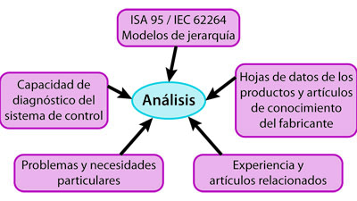 La ISA 95/IEC 62264 provee el marco (framework) sobre el cual se aplicaría el sistema de diagnóstico, específicamente sobre el modelo jerárquico de los procesos industriales, también conocido como la “pirámide de la automatización”.