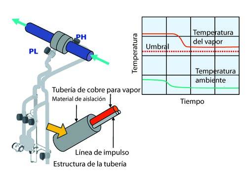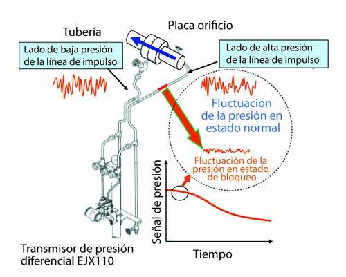 Figura 3. Configuración de algoritmos de diagnóstico utilizando variables de proceso y de diagnósticoComo se muestra en la figura 3, a fin de obtener información de diagnóstico, es necesario combinar las variables de proceso de valor físico y composición química con las variables de diagnóstico relacionadas con las fluctuaciones de señal, derivas y otras, que convencionalmente se ven como perturbaciones. A fin de evaluar el resultado de diagnóstico, una función apropiada de evaluación de diagnóstico debe definirse combinando múltiples variables de diagnóstico. Una variable de diagnóstico incluye un disturbio irregular de lo que es la variable de proceso, de modo que la variable de diagnóstico se maneja como una variable aleatoria. Las funciones de evaluación de diagnóstico utilizadas combinan la operaciones de procesamiento estadístico tales como el valor medio y la desviación estándar para variables aleatorias, las operaciones diferencial y relación para eliminar el disturbio, la operación de compensación basada en información de otra medición , y la operación que compara el estado estándar con como está. Además, pueden usarse como función de evaluación de diagnóstico un algoritmo FFT (Fast Fourier Transform, 'Transformada rápida de Fourier') para transformar una variable del campo temporal a variable del campo de frecuencia, una transformación de onda para acumular el resultado de multiplicación de una variable de proceso no estacionaria por una función base asumida apropiadamente, y como está puede usarse para una función de evaluación de diagnóstico. Aplicación de tecnologías de diagnósticoFigura 4. Ejemplo de instrumentación de traceo de vapor | Figura 5. Tendencia del valor de resistencia AFX del material de ensuciamiento del electrodoLo siguiente muestra aplicaciones de diagnóstico específicas. Diagnóstico de bloqueo de línea de impulso utilizando un transmisor de presión diferencial EJX 100Figura 6. Instrumentación de la línea de impulse de un transmisor de presión diferencial | Figura 7. Correlación entre la fluctuación de presión del lado de baja presión y la fluctuación de presión diferencial en el caso de bloqueo del lado de alta presiónSi se bloquea una línea de impulso para un medidor de presión diferencial, ocurre un problema por el lado del caudalímetro, que luego conduce a un problema para el control de planta como se muestra en la figura 6. Diagnóstico de bloqueo de línea de impulso para sistema PRMUn instrumento de campo equipado con funciones de comunicación digitales como ser un bus de campo puede llevar a cabo diagnósticos por su cuenta. Sin embargo, cuando se lleva adelante un diagnóstico avanzado, tal como el diagnóstico de tendencia basado en un gráfico de tendencias, o diagnóstico de rango multivariable, es necesario entender los resultados visualmente combinando el sistema PMR (Plant Manager Resourse, 'gerenciador de recursos de planta') con instrumentos de bus de campo. Más todavía, en muchos casos reales de diagnóstico, las características estándar de variables se establecen como datos de referencia en estado normal y luego se comparan con las variables de diagnóstico que se toman cada vez. En algunos casos, un montón de información de referencia se prepara por adelantado para futuros cambios en las condiciones de operación de la planta. Cuando se utilizan resultados de diagnóstico, por ejemplo, asignando un valor umbral apropiado basado en la tendencia, o revisando un plan de mantenimiento antes de que ocurra un problema, se requiere un software específicamente de diagnóstico instalado en el sistema PRM para llevar adelante un diagnóstico avanzado. ConclusiónFigura 8. Relación entre factor F de bloqueo de un lado y bloqueo | Figura 9. Pantalla de diagnótico ILBD para RPMLas tecnologías de diagnóstico presentadas en esta nota permiten monitorear permanentemente el estado del proceso en el lugar utilizando sensores inteligentes, para analizar las tendencias en los cambios, y para proveer información para mantenimiento preventivo en etapas tempranas. Es necesario mejorar aún más las cuestiones prácticas; por ejemplo, el rango de aplicación de tecnologías de diagnóstico y el método para evaluar la exactitud del diagnóstico. Nota del editor: La nota aquí reproducida fue originalmente escrita para la revista Yokogawa Technical Report, N°. 44. |