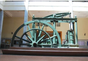Figura 1. Máquina de vapor de James Watt, en la Fábrica Nacional de Moneda y Timbre, expuesta en el vestíbulo de la Escuela Técnica Superior de Ingenieros Industriales de Madrid (España). Fuente: Wikipedia