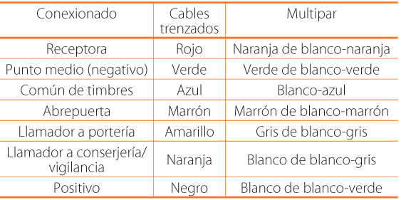 Tabla 1. Código de colores para cables trenzados o multipares para usos comunes