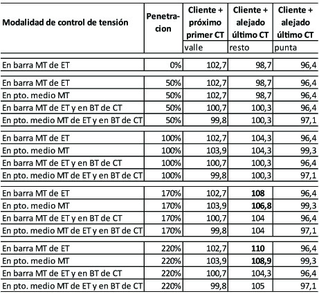 El uso de transformadores MT/BT con regulación de tensión permite satisfacer los niveles exigidos en nuestro país, aun cuando la penetración sea tal que las instalaciones alcancen su límite de carga admisible.