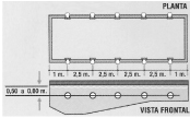 Para lograr una iluminación plena de la piscina sugerimos efectuar la instalación de la siguiente forma: las luminarias deberán amurarse a una profundidad de 0,50 a 0,60 m del borde de la piscina al centro de la misma, con una separación entre ellas de 2,5 m; y 1 m de cada ángulo de los laterales más largos.
