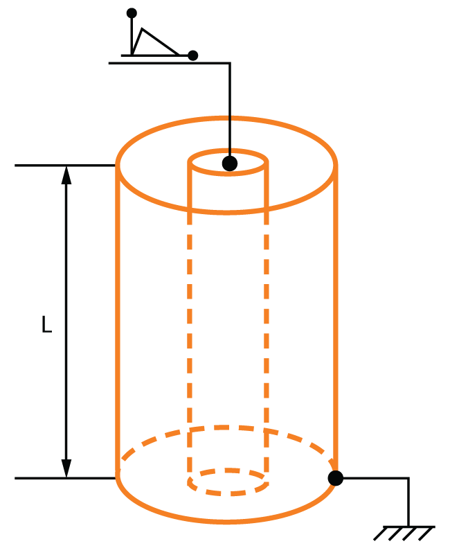 Figura 4. Configuración del modelo de Pedro Pineda.Dimensiones de los electrodos: a: radio del electrodo interno