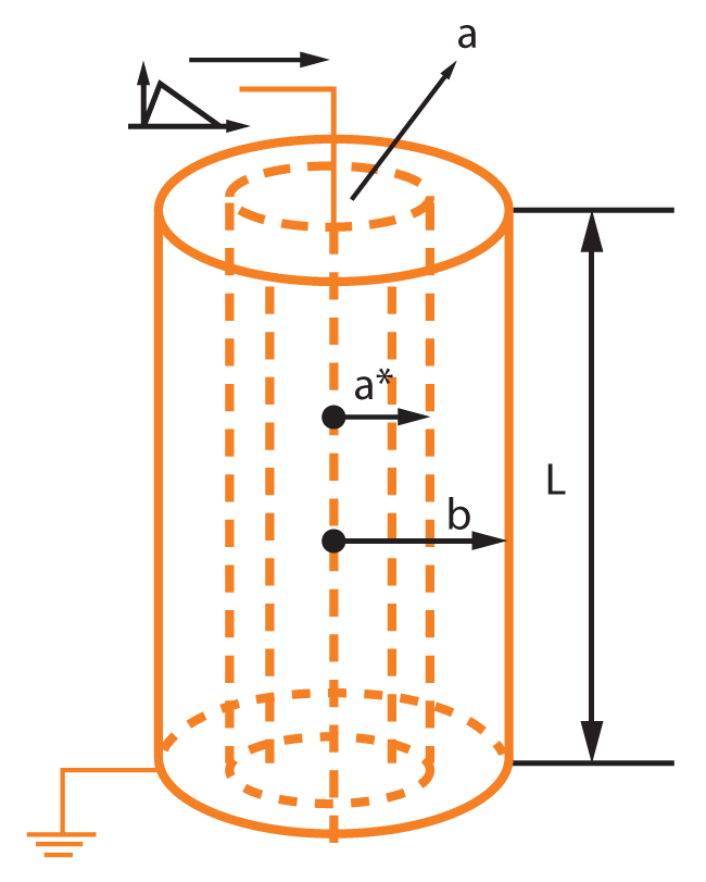 a*: radio de la zona ionizada | b: radio del electrodo externo