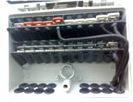 Debemos agregar que de acuerdo al tipo de aplicación que se desee realizar hay cajas chicas, medianas y grandes, las que se pueden armar con dos, tres o cuatro borneras de un solo campo de diez posiciones (una entrada y nueve salidas) o con dos borneras partidas de dos campos de cinco posiciones cada campo (una entrada y cuatro salidas). También se pueden configurar con ambos modelos. La concentración de consumidores en los puntos de acometida definirá una caja de dos, tres o cuatro borneras.