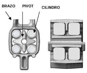 Entre otros dispositivos amortiguantes para líneas de alta tensión de 132, 220 y 500 kV, Dynalab cuenta con el espaciador amortiguador, cuya geometría ha sido establecida para lograr el mayor rendimiento del sistema: un cuerpo central con brazos articulados que se fijan al conductor mediante distintos sistemas de sujeción. Su diseño permite cumplir el doble propósito de mantener la separación del haz de conductores y controlar adecuadamente las vibraciones y oscilaciones inducidas por el viento. Tanto en cuadro, como el pívot, el brazo y el apretador son de aluminio.Cada brazo está unido al cuerpo central por medio de una articulación que comprende cuatro pares de cilindros de elastómero que van ajustados dentro de la cavidad formada por el brazo y un pivote cruciforme solidario al cuerpo. El compuesto usado para el cilindro amortiguador está fabricado con una combinación especial de caucho natural y sintético que provee buenas propiedades mecánicas, adecuada flexibilidad a bajas temperaturas y buena resistencia al ozono. El diseño original permite desplazamientos angulares del brazo que someten a los cilindros a solicitaciones esencialmente de compresión, lo que confiere a la articulación sus propiedades elásticas y amortiguantes y le permite resistir a la fatiga de mejor manera. Estos espaciadores amortiguadores están diseñados y fabricados en cumplimiento de la norma internacional IEC 61854 y protegidos por la patente N° P 010105897. Sistemas de sujeción mediante varillas preformadasLa fijación estándar se realiza mediante cuatro varillas helicoidales preformadas de aluminio que se enrollan alrededor de la cuna del brazo, de fácil instalación, libres de errores y de mantenimiento.