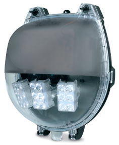 Gama Sonic presenta un concepto totalmente novedoso en luz de emergencia No se trata de un diseño más moderno de algo existente, ni de adaptaciones por cambio de tecnología. Se trata de una categoría que no existía en el mercado. Nunca antes se fabricó una unidad de emergencia para grandes áreas, con leds y con grado de protección IP 65. Características del productoMayor luminosidadEl clásico equipo para grandes áreas utilizaba dos faros de 55 W halógenos, otorgando un flujo lumínico total de 1.500 lúmenes. El GX-3F, con sus 18 leds de 1 W de alto rendimiento, entrega 1.950 lúmenes.