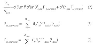Las pérdidas adicionales por unidad de volumen total (conductor, aislación e intersticios) en un punto de un bobinado con conductores rectangulares sometido a una corriente poliarmónica, considerando las componentes axial y radial de campo, se estiman con las ecuaciones siguientes (7), (8) y (9):