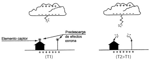 Actuación de los pararrayos, distancia de cebado o disruptiva, efectividad de las protecciones contra rayos
