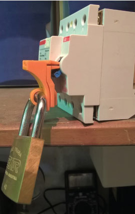 Esta nota está dedicada a encargados de edificios, inquilinos, propietarios, administradores e instaladores. Resolveremos algunas preguntas que suelen formular los encargados de edificios y la respuesta que debería dar un electricista instalador. Es necesario hacer antes algunas aclaraciones: cuando en el habla corriente se dice “disyuntor”, correspondería decir “interruptor diferencial”, y cuando se dice “abajo”, se habla de la palanca de dicho interruptor en posición intermedia o inferior, de la planta baja en el exterior o el interior del edificio, o bien del sótano, o de dos o más de las condiciones antes mencionadas. Figura 1. Traba candadoEl “disyuntor”, ¿va arriba o va abajo?Los interruptores diferenciales van tanto abajo como arriba, porque si estuviesen solo en el tablero principal (el de “abajo”) habría siempre que descender para reponerlo, en caso de avería, de aislamiento o contacto accidental dentro del departamento. Que el interruptor diferencial esté solo abajo implica imposibilidad de prueba periódica obligatoria, única forma de saber si el dispositivo sigue siendo efectivo. Yo pregunto, ¿por qué en varios edificios solo hay “disyuntores” abajo?¡Mal hecho! Porque reglamentariamente tiene que haber interruptores diferenciales tanto en el tablero principal como en el seccional.
