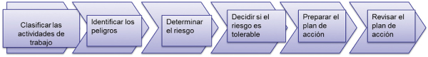 La Superintendencia de Riesgos del Trabajo, dentro de las normas establecidas y como parte de la matriz prevención establece que debe gestionarse bajo un sistema que aborde: identificación y reconocimiento de los peligros y riesgos la evaluación, de la maquinaria e instalaciones o situación que los genera o mejora de ingeniería en el establecimiento.