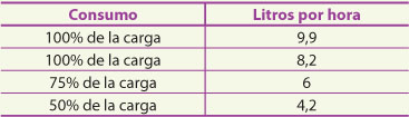 Con respecto al combustible, es habitual equipar las instalaciones fijas con un depósito diario y un depósito de almacenamiento. Estos dos depósitos pueden reducirse a uno solo si el consumo de combustible liquido del grupo electrógeno es bajo. El consumo está dado en función de la capacidad de potencia a entregar; como ejemplo, para un grupo electrógeno de treinta y tres kilovolt-amperes (33 kVA), podría ser el de la tabla a la derecha.