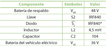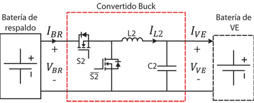 En la figura 7 se muestra el conexionado de los componentes del convertidor CC-CC tipo Buck [15] cuya fuente de energía es el banco de batería de respaldo y la carga es el banco de baterías del vehículo eléctrico.