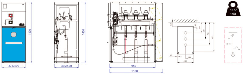 Se puede distinguir compartimiento de baja tensión, donde se ubican relés de protección, equipos de medición, etc.; compartimiento de interruptor, seccionador bajo carga o transformadores de tensión; compartimientos de barras; compartimiento de botella terminal de cable y transformadores de medición, y compartimiento de seccionadores en el doble barra. Eventualmente, y a pedido, se puede suministrar un conducto colector de escape de gases con salida hacia el exterior del edificio. También , el compartimiento de medición de tensión.