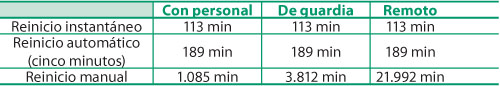 Además, en el caso de reinicio manual se produce un retraso en función del nivel de servicio del personal en el equipo. Este nivel de servicio se divide en las tres categorías siguientes: