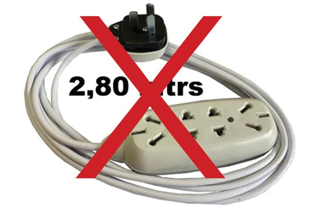 Se pueden conectar hasta cuatro consumos de 10 amperes cada uno, generando el riesgo de incendio en la boca donde se conecta a la instalación fija y comprometiendo la seguridad de toda la instalación.
