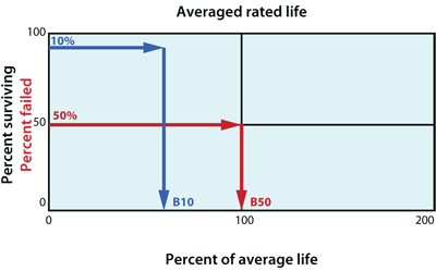 El famoso “lumen maintenance” (mantenimiento luminoso) es la forma de medir la vida útil o vida media de los leds. En la figura 1, B10 es la expectativa de fallo del diez por ciento de un lote analizado, mientras que B50 es la expectativa de fallo o depreciación de la mitad del lote medido, comúnmente llamada la vida media de la lámpara. Donde allí la medición más común era observar de un lote de 100 lámparas, el tiempo transcurrido hasta que la mitad haya fallado y de allí tomar la vida media.