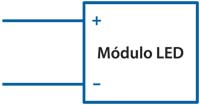 Figura 1. Led, símbolo eléctrico Un módulo led es una placa de circuito impreso con un determinado número de leds interconectados. Los leds pueden presentarse todos individualmente conectados entre sí, o bien, como una sola pastilla semiconductora llamada “COB” (‘chip en placa’, por sus siglas en inglés) también conformada por leds interconectados, pero integrados en un mismo componente.